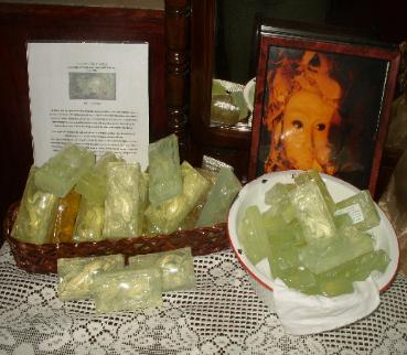 | Spirit of the Dragon everything It is used extensively in the tropics where it is grown as a herbal solution to a wide variety of skin Mediterranean have recognized the benefits of olive oil to nourish and moisturize the skin. To complete the process of this special soap, we add to the mixture lemongrass essential oil. Lemongrass oil oil to nourish and moisturize the skin. To complete oil to nourish and moisturize the skin. To complete the process of this special soap, we add to the the process of this special soap, we add to the mixture lemongrass essential oil. Lemongrass oil revitalizes the body and relieves the symptoms of revitalizes the body and relieves the symptoms of jetlag, clears headaches and helps to combat nervous exhaustion and stress-related conditions. parasympathetic nervous system, which is a boon when recovering from illness, as it also stimulates It is a great overall tonic for the body and it boosts the glandular secretions. Lemongrass oil helps tone the muscles and tissue, relieves muscle pains by making the muscle more supple. It helps with correcting poor circulation and as an insect repellent. It also is used for clearing up oily skin and acne, as well as athlete's foot and alleviates excessive perspiration. Our products contain no animal ingredients, artificial colors, or unnecessary chemicals and was not tested on animals. Personally made by Mary Sutherland CLICK HERE FOR PURCHASE AND MORE INFORMATION Weight 4.5 oz bar Price: $5.00 per bar |