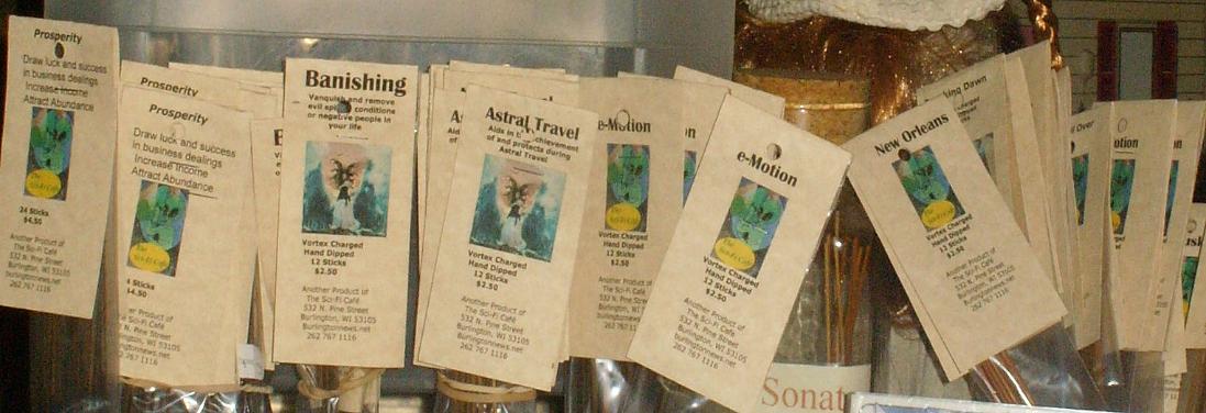 | Incense Sticks - Another Product of the Sci-Fi Cafe Each package comes with approximately 24 sticks, each of which has a burn time of 30 minutes. Handcrafted, and of the highest quality, these charcoal based incense sticks are perfect for enhancing the atmosphere of and rituals. |