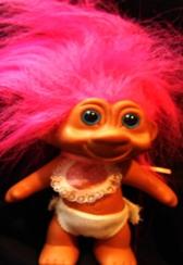 | TNT Troll Doll baby dressed in diaper and bib pink hair 6 inches 12.99 |