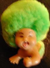 | TROLL BABY with GREEN AFRO Hair mouth open showing tongue 2 inches 9.99 |