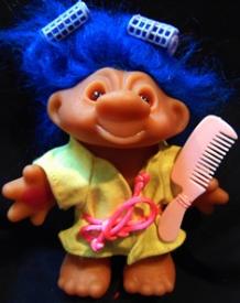 | DAM TROLL in yellow robe and curlers holding troll comb blue hair 6 inches 13.99 |
