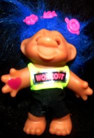 | DAM TROLL WORK OUT outfit with heart tattoo on inside palm of hand blue hair 6 inches 13.99 |