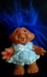 | DAM TROLL GIRL in blue sun dress with star tattoo on palm of hand blue hair 6 inches 13.99 |