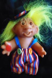 | Dam Troll doll Clown in striped bibs and hat yellow hair 6 inches 13.99 |