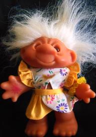 | Dam Troll Doll girl in yellow print sun suit white hair 6 inches 13.99 |