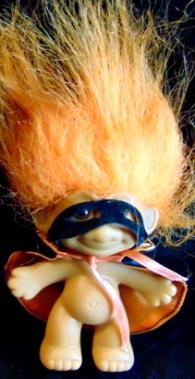| Halloween Troll doll RUSS MINI TROLL JEWELRY PIN -HALLOWEEN HOLIDAY masked troll orange hair mask with purple cloak 1.5 inches 4.50 |
