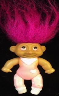 | NOVELTY TROLL IN FOOTED PAJAMAS AND BIB pink hair and eyes 6 inches 12.99 |