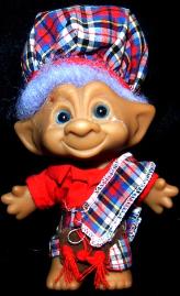 | TREASURE TROLL DOLL SCOTTISH Blue hair eyes and bellybutton 6 inches 75.00 RARE |