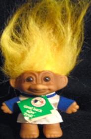 | RUSS GOOD LUCK PACKER TROLL holding football 6 inches yellow hair Rare and Mint Condition with tags Bring him to the game with you or while you are watching the game on television! $40.00 |
