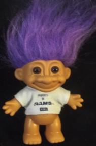 | RUSS SPORTS TROLL wearing shirt reading PROPERTY OF THE RAMS 6 inches Purple Hair 12.99 |