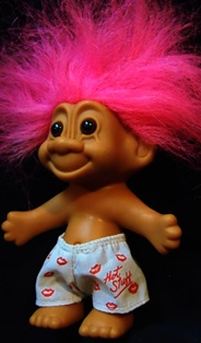 | RUSS TROLL Arms open so it can be attached to a pencil or other item. hearts on shorts with lipstick kiss mark on cheek 3 inches 9.99 |