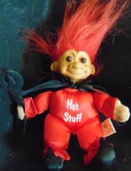 | TROLL DEVIL HOLDING PITCHFORK WITH BLACK CAPE Hot Stuff Red Hair 7 inches 13.99 |