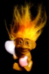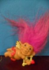 | Troll sitting holding pink and purple heart melon yellow hair 4 inches $6.99 |