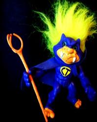 | BATTLE TROLL OFFICER PATROLL Voted most likely to let a felon escape in his class at the Troll Enforcement academy. Officer PaTroll likes nothing better than gobbling big greasy donuts at the Troll Town Coffee Shop. But don't let his laidback facade deceive you. This two fisted trouble shooter has collared some of the toughest troll terrorists with his lighning quick reflexes and his steady hand! A sentimental troll Officer PaTroll still carries his first badge- the one he found in a Trollies cereal box Made by Hasbro 5 inches 10.99 |