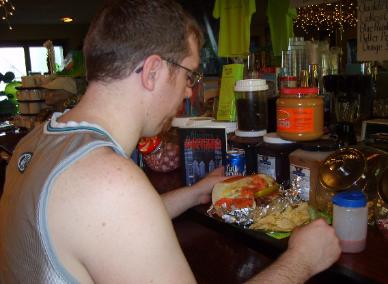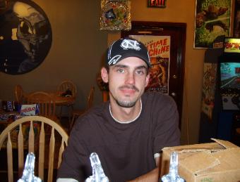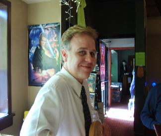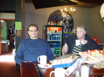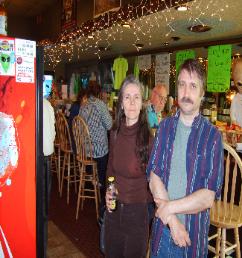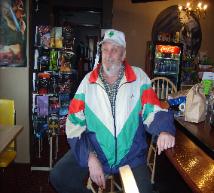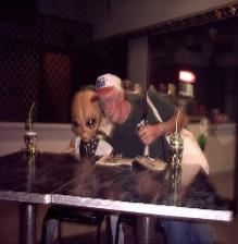 | Brad having a drink with the 'Alien Dude' at the Sci-Fi Cafe |