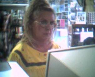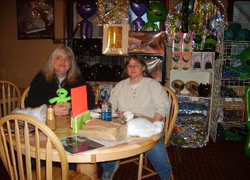 | Mary visiting with virtual friends on the many computers at the Sci-Fi Cafe. We have 'Free Wi-Fi" |