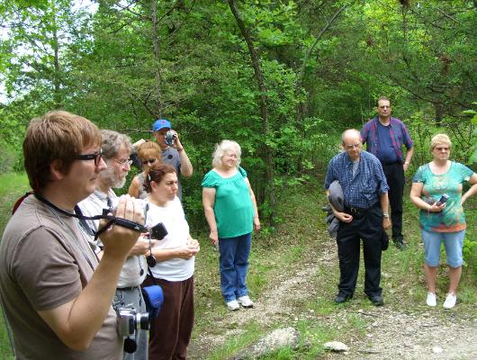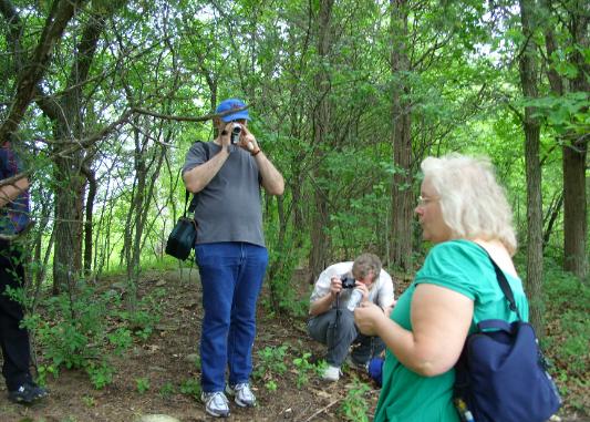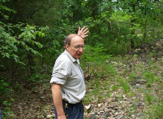 | ADENA MOUND AND FRANK JOSEPH EXPEDITION GUIDES: Frank Joseph, Peter Moon and Mary Sutherland Frank Joseph explaining to guests about a now forgotten people archeologists refer to as 'The Adena People'. These photos were taken at the Sacred Circle of Burlington showing the Adena Rock Mounds in the background. Brad and Mary Sutherland discovered these rock mounds approximately 8 years ago. Joseph discusses the Shamanic energies that guard this land and points out that Sutherland's Rock Mounds found here at the sacred site may date to approximately 3,000 years old! He estimates that the rock mound in the background may have been originally 6-10 feet in height and 30-40 feet in length, covered by plaster made from ground shells. He also connects these people to the people of Rock Lake where over 1100 ancient structures have been found under its waters...including pyramids that predate the pyramids of Egypt. |
