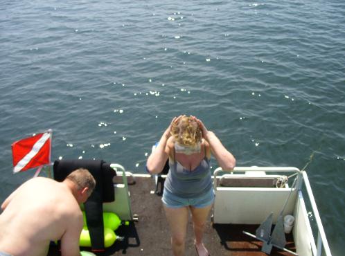 | Exploring the Pyramids of Rock Lake Wisconsin Frank Joseph Host of the Expedition Special Thank you to Mark and Travis Enneper for the Pontoon and a great day on the Lake . June 22, 2008 After the Summer Solstice Celebration a few of us ventured on to Lake Mills to investigate the underwater pyramids that are known to exists...some claiming they pre-date the pyramids of Egypt. This area is of special interest to us being that it is our belief that these ancient people of Rock Lake are connected to the people who built the rock mounds of Burlington. A representative from the DNR stopped by our boat and informed us that over 1100 ancient structures have been found under Rock Lake. He then lent us a map showing where some of the more popular dives were being conducted.... Following are some of the photos we took of our journey into the 'unknown' with Frank Joseph Brad and Mary Sutherland Frank Joseph and Mary Sutherland looking for ancient underwater structures at Rock Lake 30-40 foot Deep in this area |
