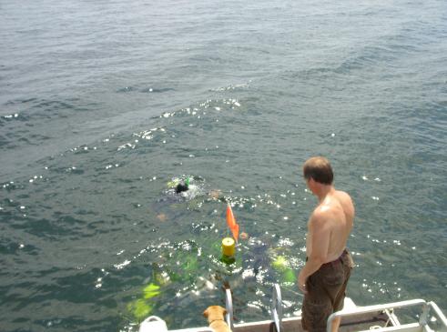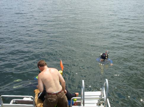 | Exploring the Pyramids of Rock Lake Wisconsin Frank Joseph Host of the Expedition Special Thank you to Mark and Travis Enneper for the Pontoon and a great day on the Lake . June 22, 2008 After the Summer Solstice Celebration a few of us ventured on to Lake Mills to investigate the underwater pyramids that are known to exists...some claiming they pre-date the pyramids of Egypt. This area is of special interest to us being that it is our belief that these ancient people of Rock Lake are connected to the people who built the rock mounds of Burlington. A representative from the DNR stopped by our boat and informed us that over 1100 ancient structures have been found under Rock Lake. He then lent us a map showing where some of the more popular dives were being conducted.... Following are some of the photos we took of our journey into the 'unknown' with Frank Joseph Brad and Mary Sutherland |