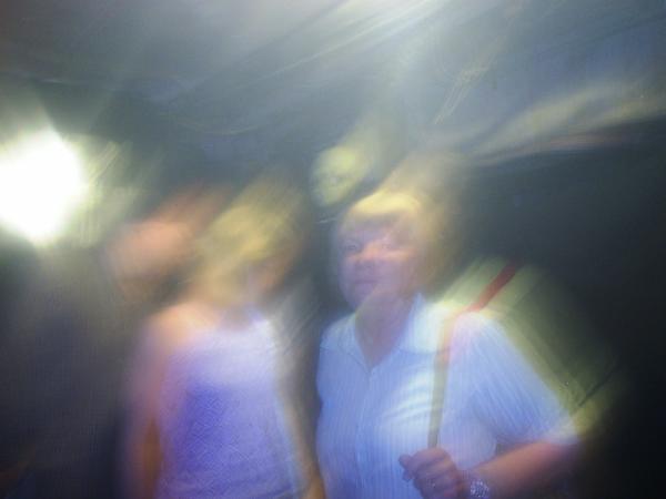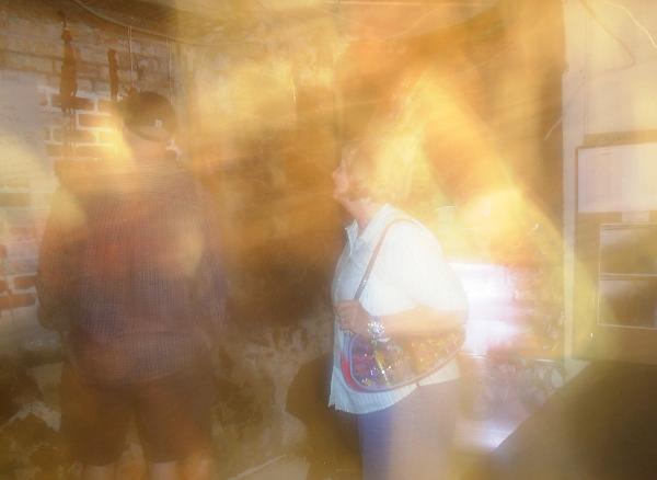 | These people are checking out the underground tunnel system while ghostly forms are checking them out. |