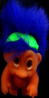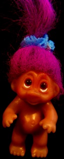 | DAM TROLL DOLL Droopy eyes naked with blue scrungie making pony tail fuchsia hair 3 inches 7.99 |