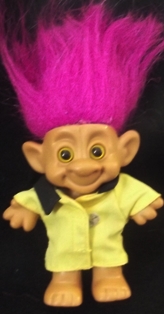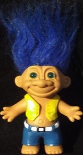 | NOVELTY TROLL Vinyl molded blue hairs yellow vest in blue white belted pans 6 inches 12.99 |