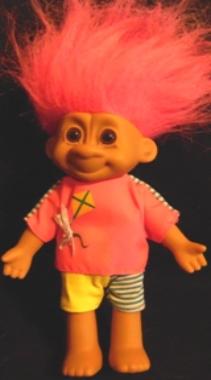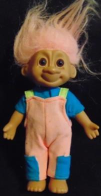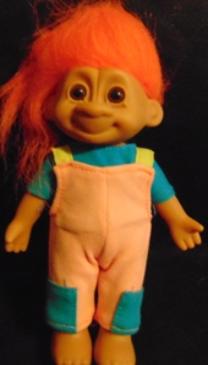 | RUSS TROLL 7 Inch boy dressed in pink blue and green bibs with orange hair ADJUSTABLE ARMS AND LEGS 12.99 |