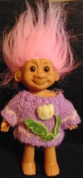 | RUSS TROLL 7 inch girl pink hair dressed in purple knitted dress ADJUSTABLE ARMS AND LEGS 12.99 |