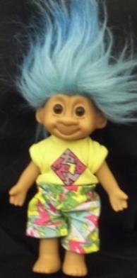 | Novelty Troll 8 inches Russ light blue hair in yellow print pants outfit $12.99 |