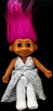 | RUSS TROLL ADJUSTABLE ARMS AND LEGS dressed in white pants and long silver gown Fuchsia hair 7 inches 12.99 |
