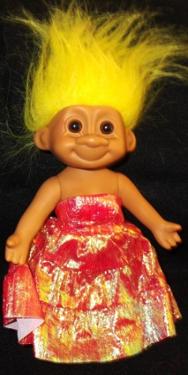 | RUSS TROLL -GLAMOUR ADJUSTABLE ARMS AND LEGS yellow hair dressed in pink-gold evening gown 7 inches 12.99 |