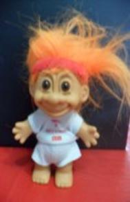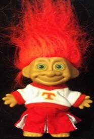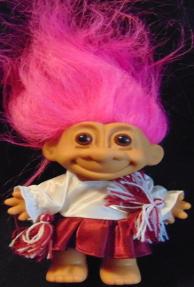 | TROLL Cheerleader dressed in red and white cheerleader suit with T on front Orange Hair green eyes 6 inches 12.99 |