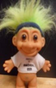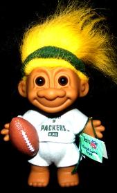 | RUSS GOOD LUCK PACKER TROLL holding football 6 inches yellow hair Rare and Mint Condition with tags Bring him to the game with you or while you are watching the game on television! $40.00 |