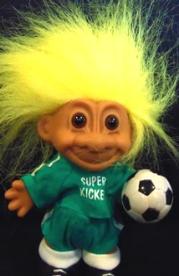 | RUSS Troll doll sports super kicker soccer player with ball yellow hair 6 inches 13.25 |