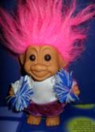 | Russ Cheerleader troll white and burgandy with blue and white pom poms 6 inches pink hair $12.99 |