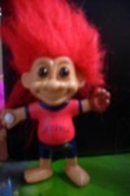 | Russ Sports troll holding ball in red shorts dark blue hair 6 inches $12.99 |