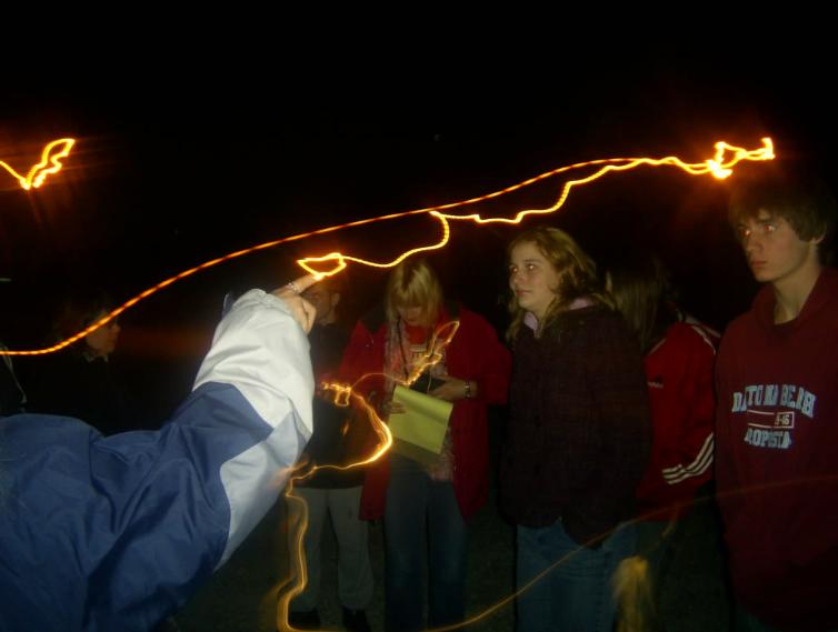 | Energy coming off Mary's finger as she points. Could this be why an animal gets so upset when we point at them. Can they detect this energy emitting from us? |